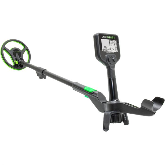 Nokta/Makro Mini Hoard современный детский металлоискатель с ЖК дисплеем, на котором отображаются понятные для детей информативные картинки, рабочей частотой 15 кГц, металлоискатель имеет 2 звуковых тона идентификации цели - низкий на черные, высокий на цветные металлы, режим пинпоинт для точного обнаружения центра цели, шкалу глубины залегания цели с тремя делениями, дисриминацию железа, оборудован круглой 6" (15 см) моно катушкой. Металлоискатель очень удобен в сборе и перевозке, в собранном состоянии его длина составляет всего 63 см.