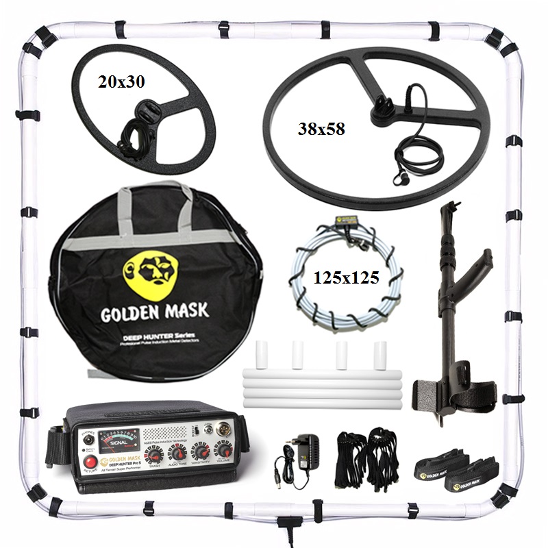 Глубинный импульсный металлоискатель Golden Mask Deep Hunter PRO5st (комплект PRO с рамкой 125х125 см, катушками 38х58 см и 20х30 см и штангой)