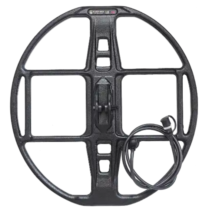 Поисковая катушка для реликвий длиной 18 дюймов (45 см) позволяет находить предметы на экстремальных глубинах и может быть установлена на любом металлоискателе Golden Mask 7G. Из-за своего большого веса эта катушка используется временно.